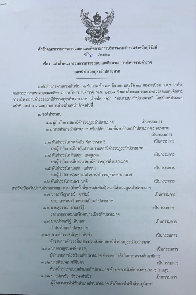 ด่วนผู้ว่าลงนาม ตั้ง กต.ตร.สภ.ลำปลายมาศ 20 มกราคม 2569 โดย admin / O04-กตตร,O06-การประชาสัมพันธ์ข้อมูลข่าวสาร,งานป้องกันฯ,O06-การประชาสัมพันธ์ข้อมูลข่าวสาร,งานอำนวยการ ผู้ว่าราชการบุรีรัมย์ ลงนามแต่งตั้ง กต.ตร.สภ.ลำปลายมาศ FacebookFacebookXXLINELine