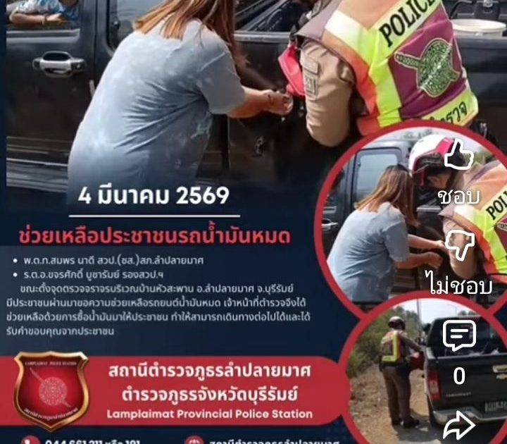 น้ำมันหมด จดเบอร์โรงพักลำปลายมาศไว้ 5 มีนาคม 2569 โดย admin / O06-การประชาสัมพันธ์ข้อมูลข่าวสาร,O6งานจราจร FacebookFacebookXXLINELine