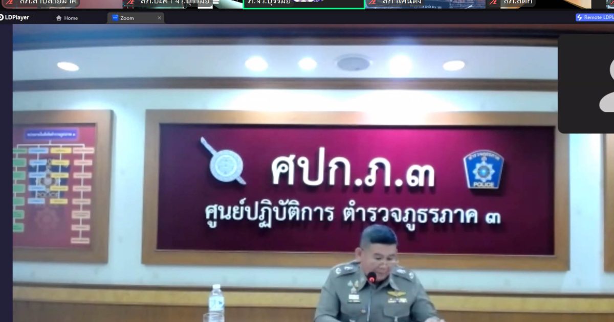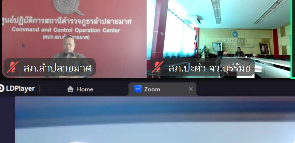 สภ.ลำปลายมาศ โดย พ.ต.อ.วชิรวิทย์ วรรณธาณี ผกก.สภ.ลำปลายมาศ มอบหมายให้ พ.ต.ท.พงศ์จรัส รัตนธรรมเมธี รอง ผกก.ป.ฯ เฝ้าฟังการประชุมฯ ผ่านระบบการประชุมทางไกล Zoom ณ ห้อง ศปก.สภ.ลำปลายมาศ