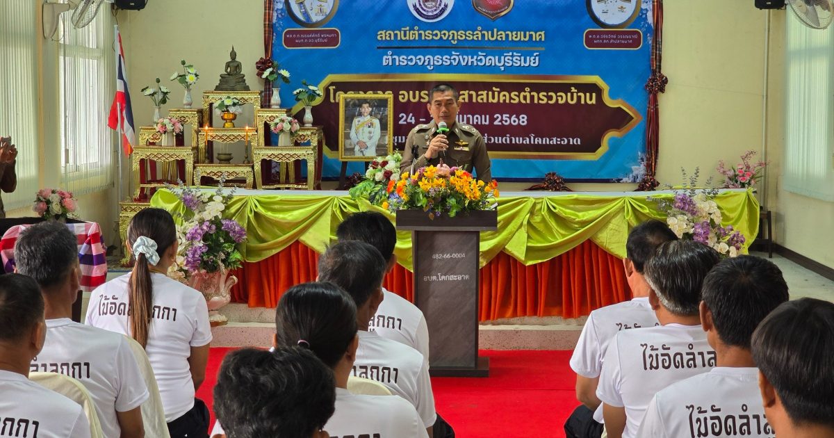 24 มีนาคม 2568 เวลา 09.00 น. พล.ต.ต.ณรงค์ศักดิ์ พรหมทา ผบก.ภ.จว.บุรีรัมย์ พร้อมด้วย พ.ต.อ.ชูสิทธิ์ หล่อแสง รอง ผบก.ฯ ได้เดินทางมาเปิดโครงการ ฝึกอบรมอาสาสมัครตำรวจหมู่บ้าน รุ่นที่ 1 ประจำปี พ.ศ. 2568 ของ สถานีตำรวจภูธรลำปลายมาศ ณ หอประชุมองค์การบริหารส่วนตำบลโคกสะอาด อ.ลำปลายมาศฯ