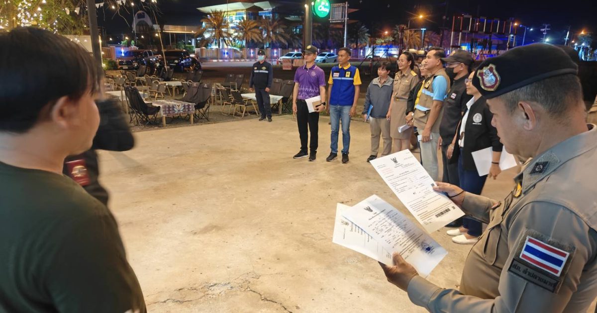 ฝ่ายปกครอง สาธารณสุขอำเภอ และเทศบาลเมืองลำปลายมาศ ตรวจสอบร้านปลายมาศแคมป์ปิ้ง เพื่อตรวจสอบและป้องปรามการใช้เสียงและตรวจสอบการพนันและสิ่งของผิดกฎหมายภายในร้าน