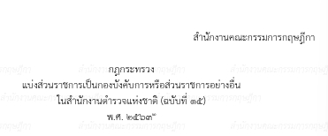 กฎกระทรวง แบ่งส่วนราชการเป็นกองบังคับการหรือส่วนราชการอย่างอื่นในสำนักงานตำรวจแห่งชาติ พ.ศ.๒๕๖๒ ฉบับที่ ๑๓