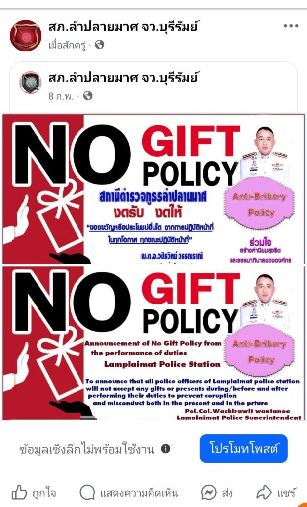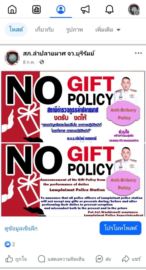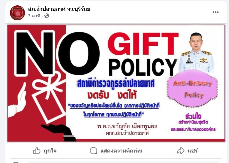 1. อินโฟกราฟิก นโยบายไม่รับของขวัญและของกำนัลทุกชนิด (No Gift Policy) จากการปฏิบัติหน้าที่